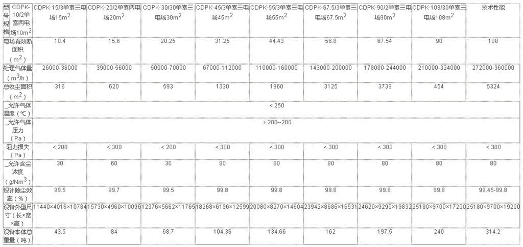 靜電除塵器技術參數性能
